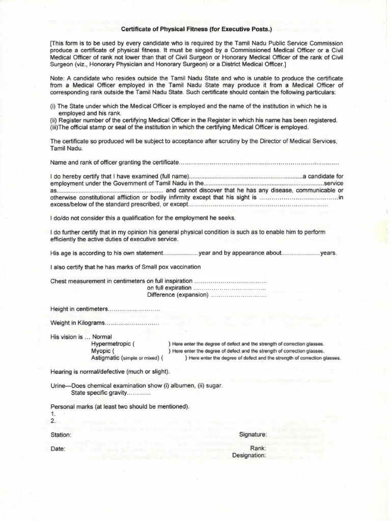 Certificate of medical fitness (to be deposited a t the time of joining) to be obtained only from gazetted government medical officer/medical officer of a government undertaking. (please note that in no other form this certificate will be accepted.